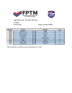 INVITACION A LA LIGA PRIMERA FECHA 02 ABRIL 2022 PRIMERA DIVISION
